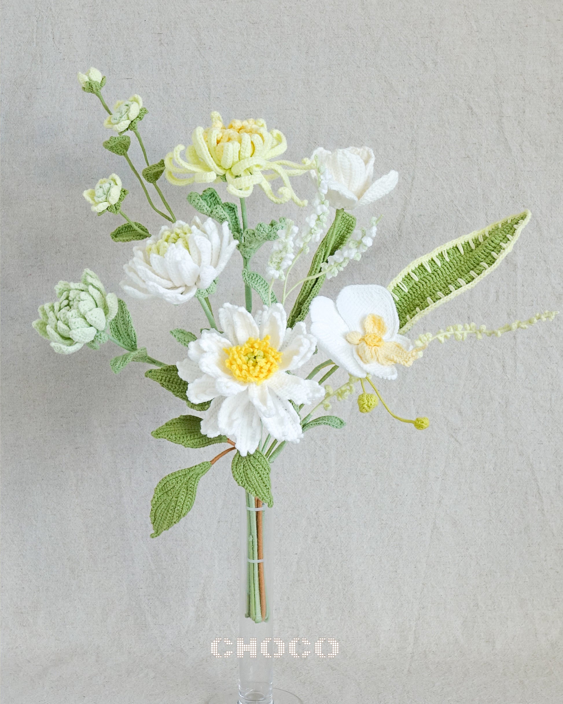 The arrival of spring is often felt in the morning dew. This bouquet captures that fresh, quiet moment with pure whites, subtle sprout greens, and bright yellows—cool and pure like an early spring dawn. Bring a touch of elegant freshness to your living space.